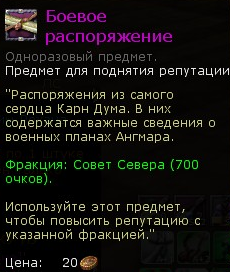 Боевое распоряжение Название на английском: War Dispatch Тип: Репутация: Фракция Минимальный уровень: 40 Местонахождение: Падает с монстров в восточном Ангмаре.
